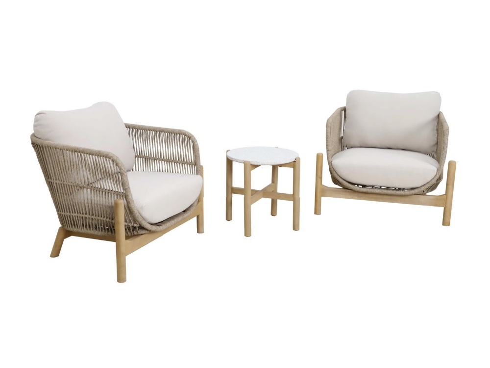 Дополнительно : столешница керамогранит, Веревочное плетение Rope, Цвет плетения - бежевый, Анодированная фурнитура из нержавеющей стали TERAZZO ,цвет белый