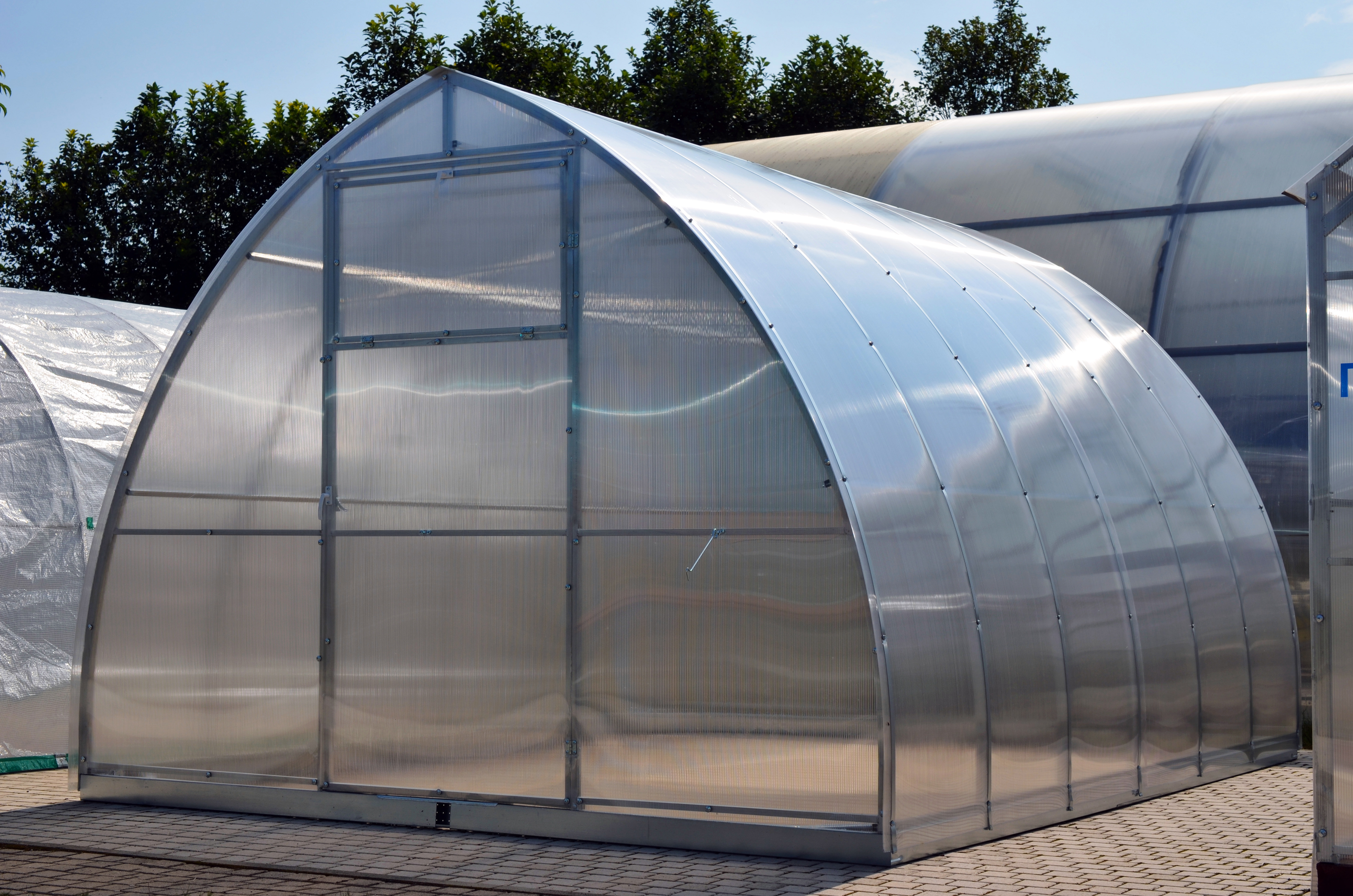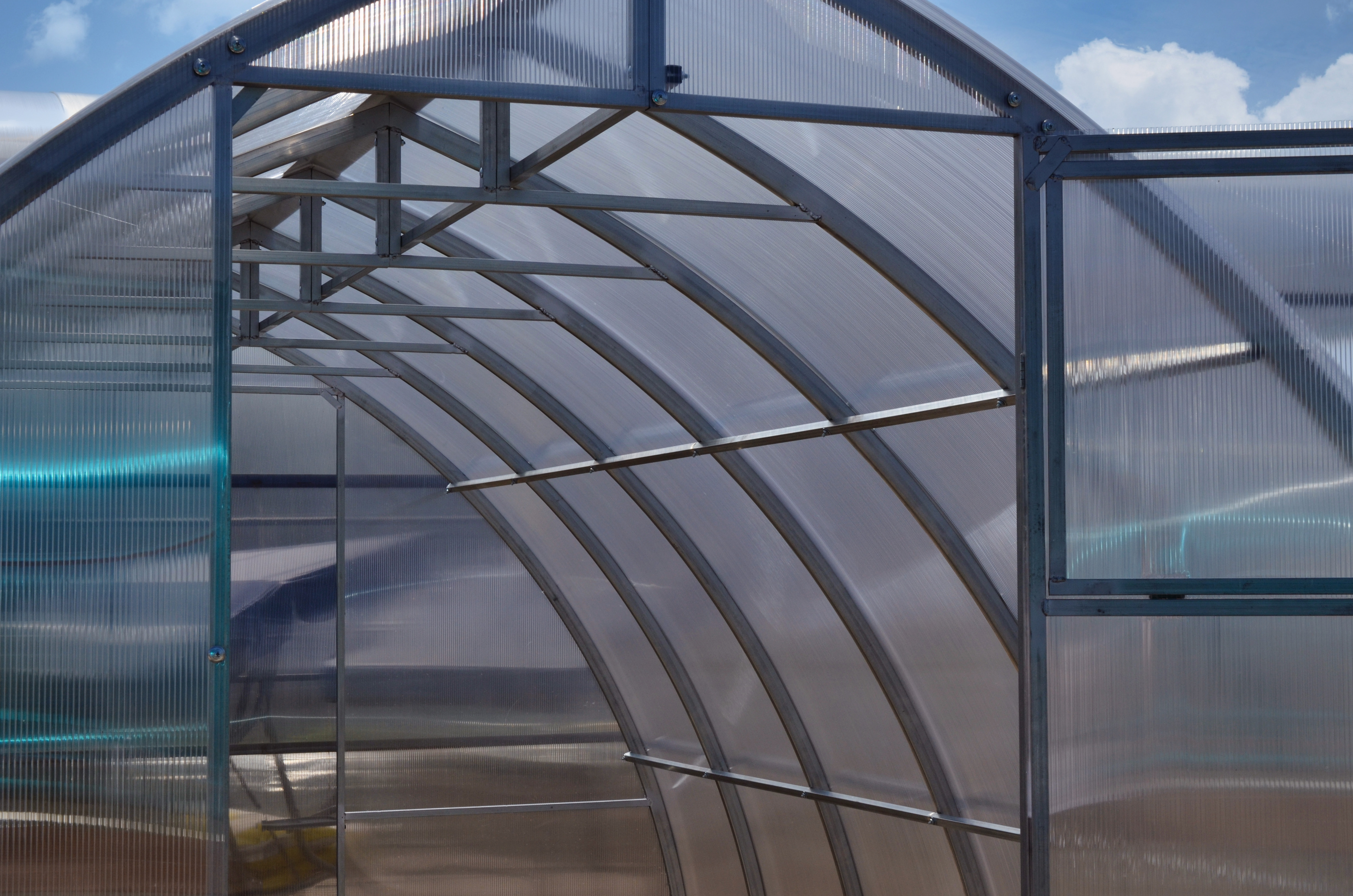 Дополнительно : Поликарбонат в комплект не входит!!! Расход поликарбоната (лист 2,1*6м): каркас 4м- 3 листа, удлинение 2м- 1 лист; шаг дуги: 67см; выдерживает снеговую нагрузку 110 кг на м2 (соответствует 25 см снежного покрова) , 2 двери, 2 форточки.В комплекте все необходимые для сборки болты и саморезы.