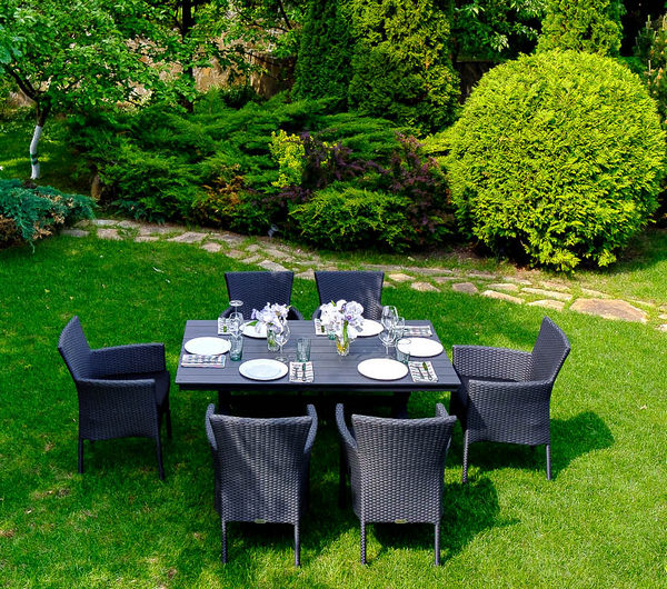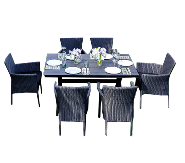 Дополнительно : Искусственный ротанг, плоское плетение; столешница polywood (полимер с древесной крошкой)