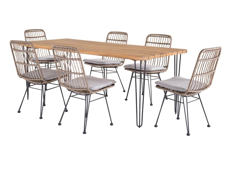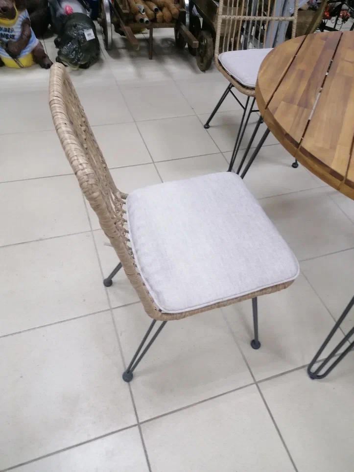 Дополнительно : столешница Массив акации, Основание Металл, цвет основания - Темный графит, стулья - искусственный ротанг, каркас алюминий, подушка в комплекте